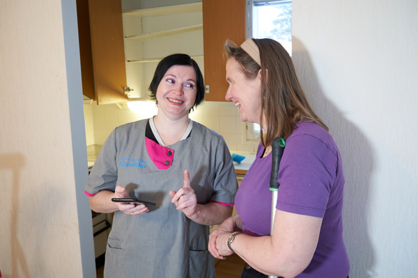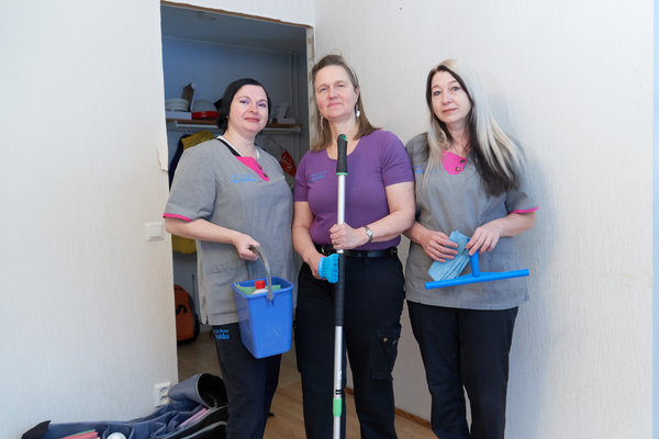 The empty apartment is filled with laughter as Kirsi, Alina and Nataliia make it clean as a whistle. Both Alina and Nataliia have previously worked in customer service and sales jobs in their home country.